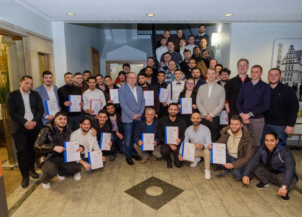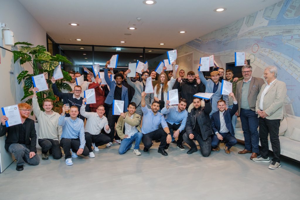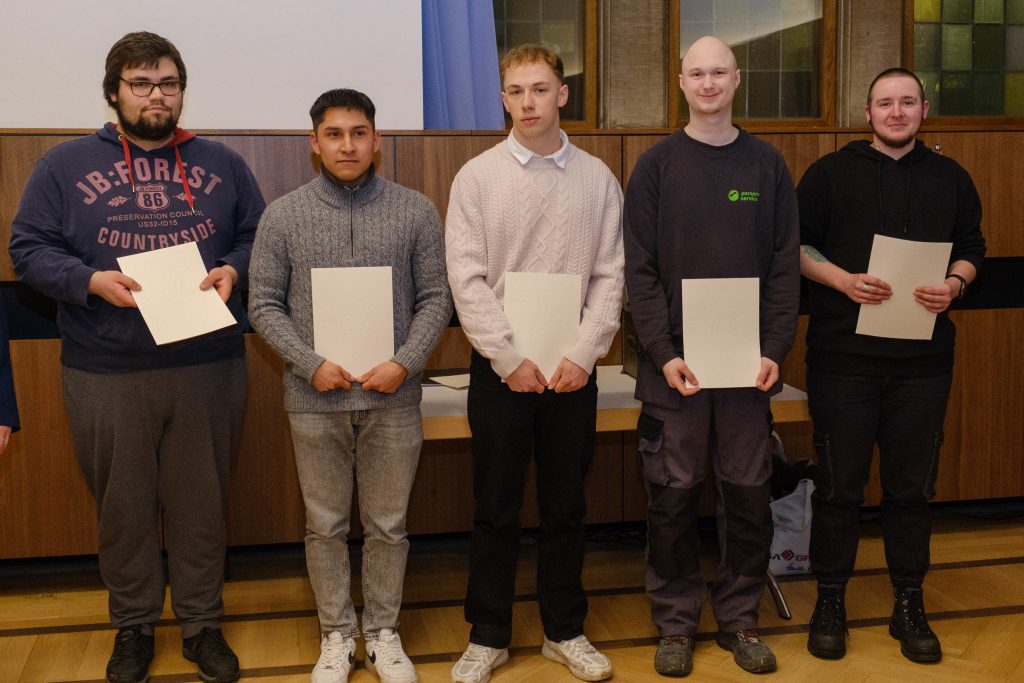 Wegen guter Leistungen erhielten der Metallbauer Ben Valentin Boelmans sowie die Fachpraktiker Pierre Krey, Gabriel Salazar Strümpler, Tobias Stabenow, John Strohauf und Leon Wittenberg vom Ausbildungsbetrieb Nordic Campus extra Urkunden.