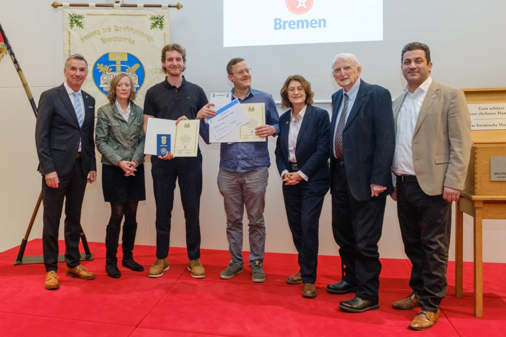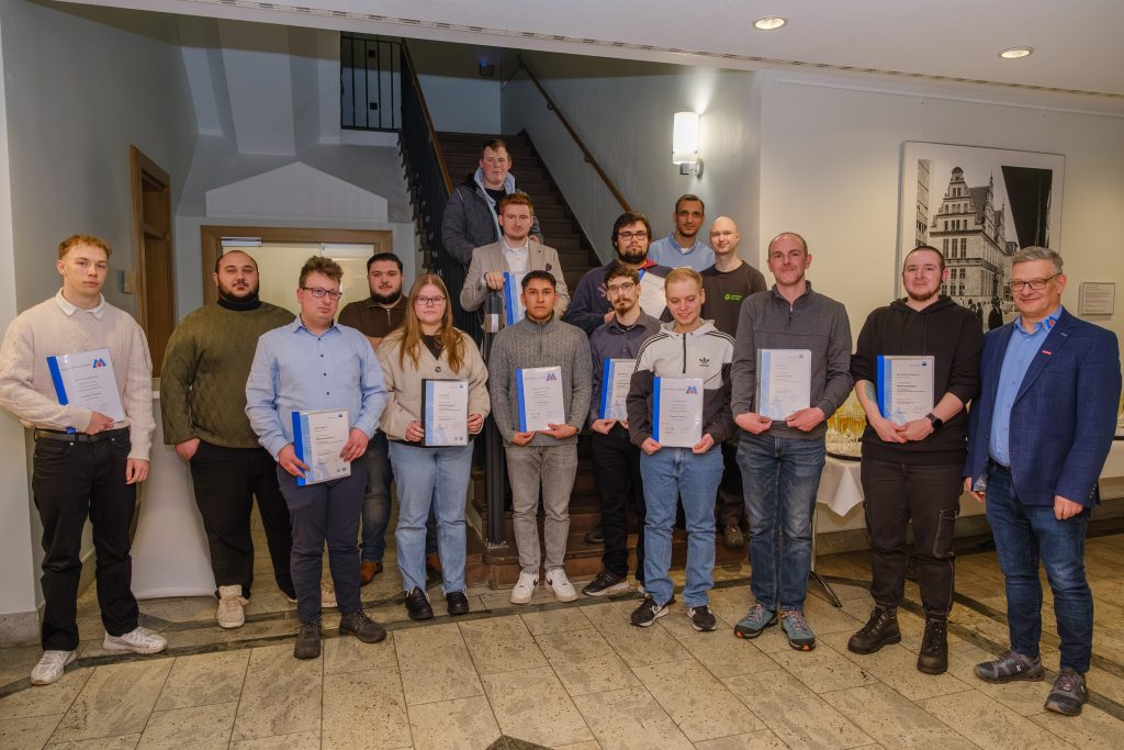 Christopher Prause (Ausbildungsbetrieb: Handwerk gGmbH) wurde als Prüfungs-bester mit einer Urkunde und einem Scheck über 1.500 Euro geehrt. Bennet Reyher (MBK Autoteile) und Marcel Masopust (Handwerk gGmbH) erhielten jeweils eine Urkunde und 750 Euro.