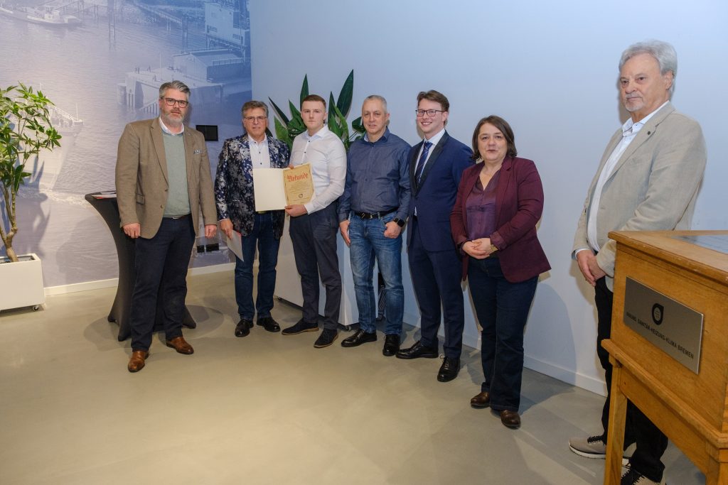Bremen neue Umweltsenatorin Henrike Müller gratulierte den Jung-Gesellen zu ihren bestandenen Prüfungen und wird sich über neue Fachkräfte im Klimaschutz-Handwerk SHK freuen.