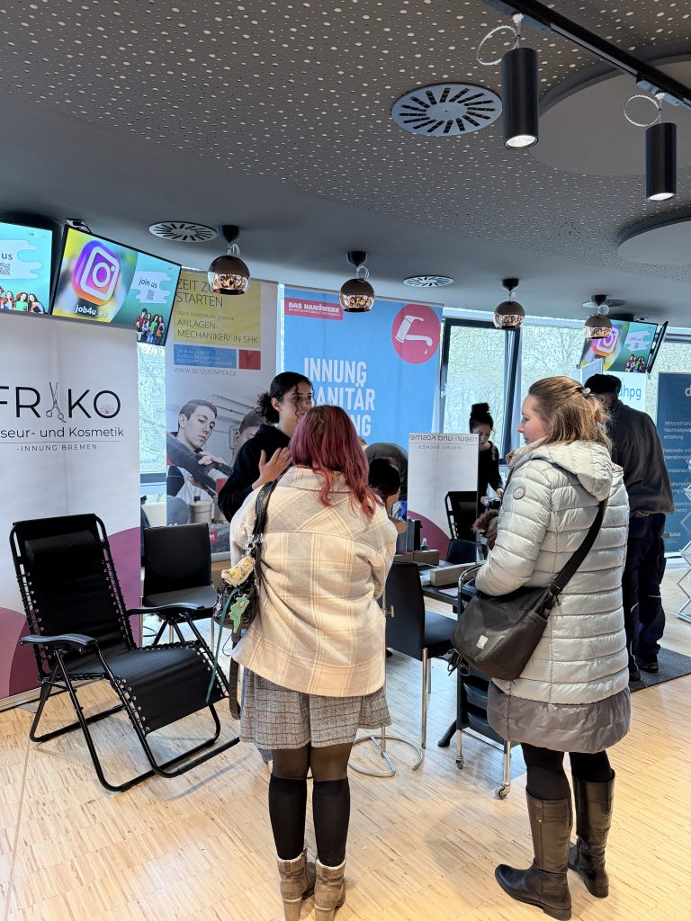 Die Beraterinnen und Berater der Handwerkskammer standen ebenfalls mit Infos rund die die Bewerbung und die Ausbildung zur Verfügung und vermittelten interessierte Jugendliche nach Möglichkeit direkt zu den jeweiligen Innungen. Dort bekamen diejenigen mit besonders großem Interesse eine „Wild Card“ zum näheren Kennenlernen von Ausbildungsbetrieben.