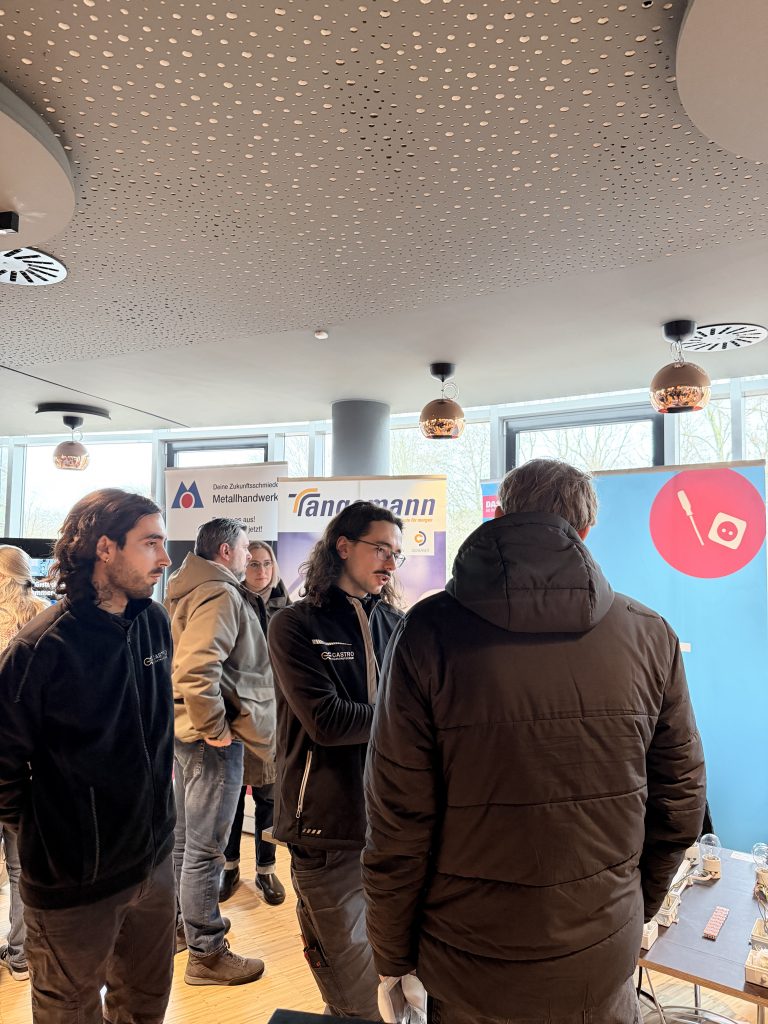 Mehrere Tausend Schülerinnen und Schüler nutzten die Chance, sich an den Info-Ständen des Handwerks zu informieren und erste Kontakte zu Ausbildungsbetrieben zu knüpfen. Insgesamt neun Innungen (Elektro, Maler/Lackierer, SHK, Schornsteinfeger, Konditoren, Metall, Dachdecker, Gebäudedienstleister, Friseure/Kosmetik) waren dabei und boten den Jugendlichen außer Informationen auch die Gelegenheit, ihr handwerkliches Geschick bei kleinen praktischen Übungen zu testen.